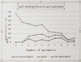 Each material test five groups, 10 closing-breaking operations for each group, and each operation's welding force was measured by a sensor when the contact was broken.